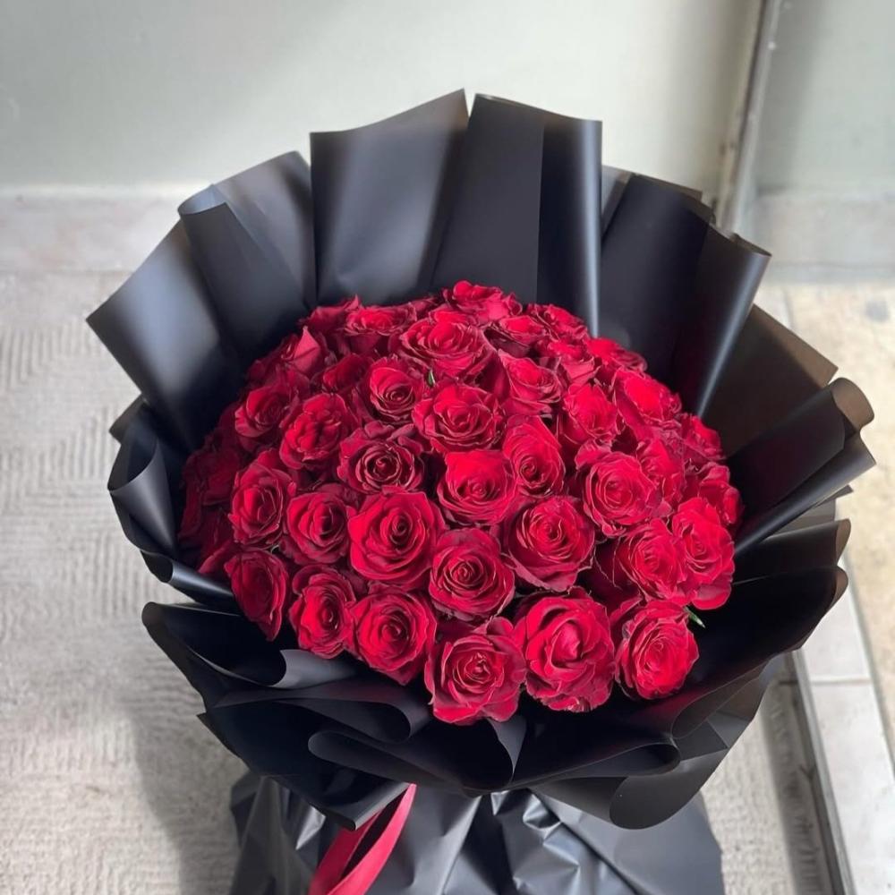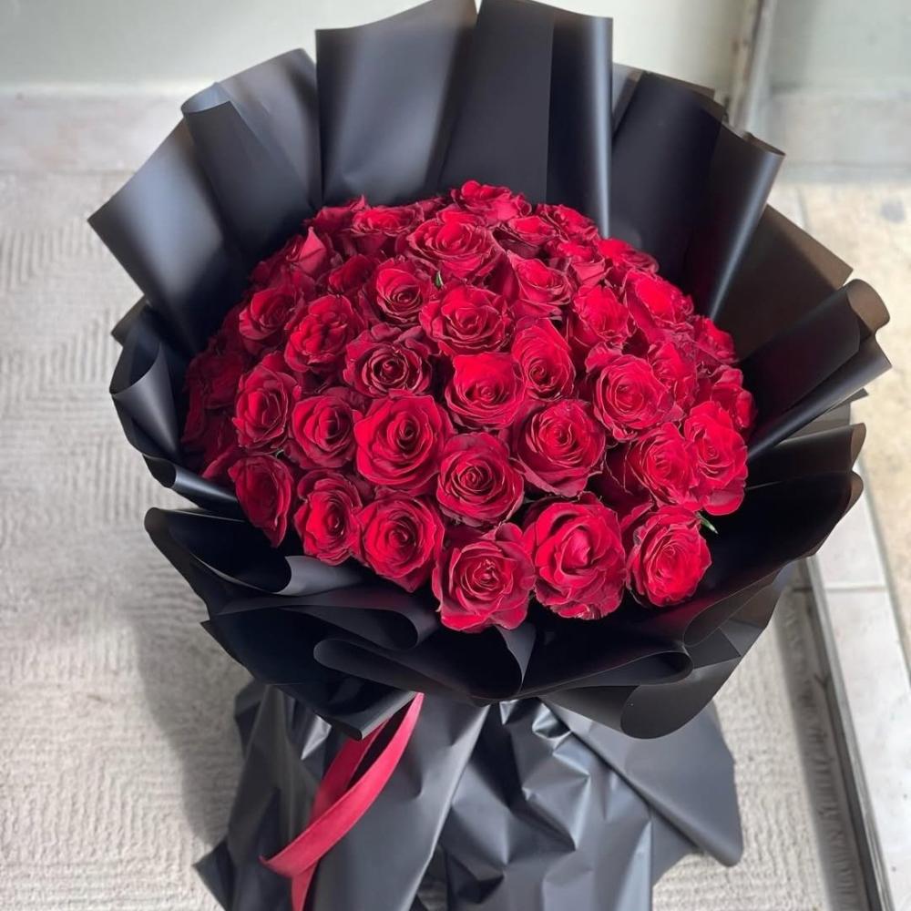 عبّر عن مشاعرك في كل مناسبة بأناقة استثنائية تنسيق فاخر من الورد الجوري الأحمر المتألق، مغلف بأسود أنيق يضفي لمسة من الفخامة والغموض باقة تحمل في طياتها دفء الحب وسحر الرومانسية، لتكون هديتك المثالية
