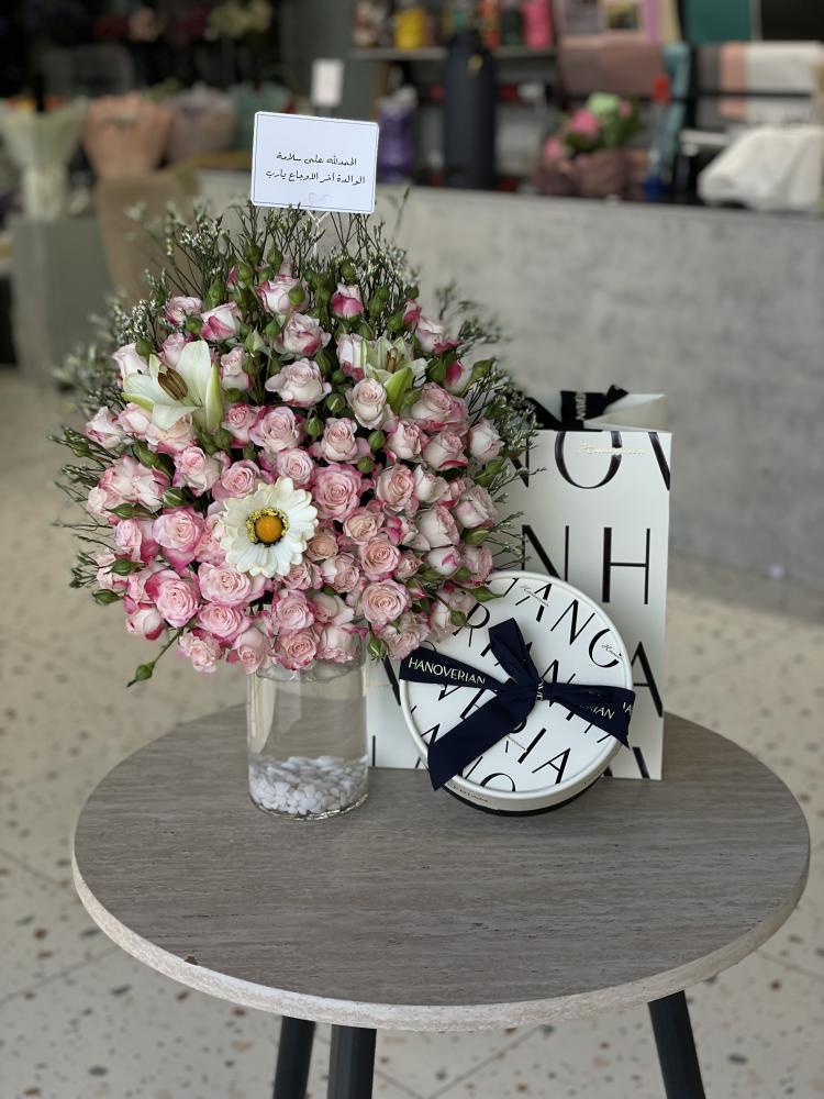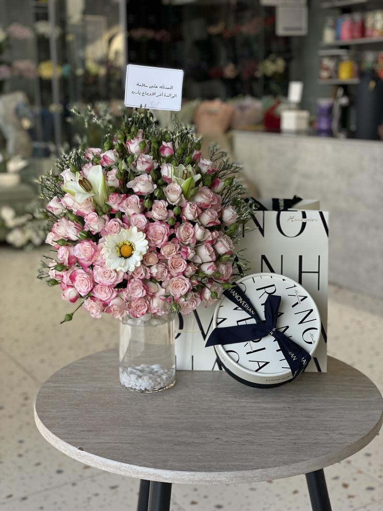 ملاحظة هامة: قد يطرأ تغيير بسيط على لون بعض الورود حسب المتوفر مع التزامنا بجودة التنسيق بنفس الروعة والأناقة