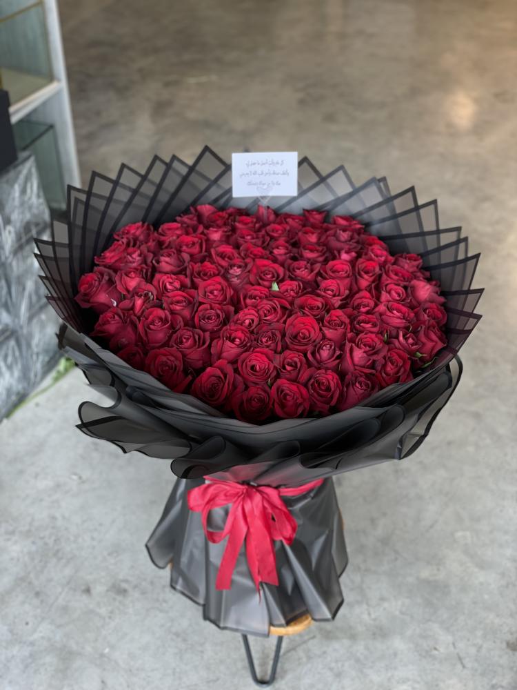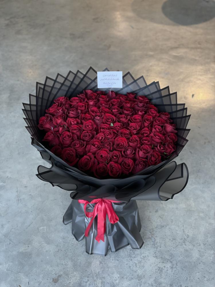 المحتوى: ورد جوري احمر العدد 80 وردة التغليف اسود معا شريطة حمراء